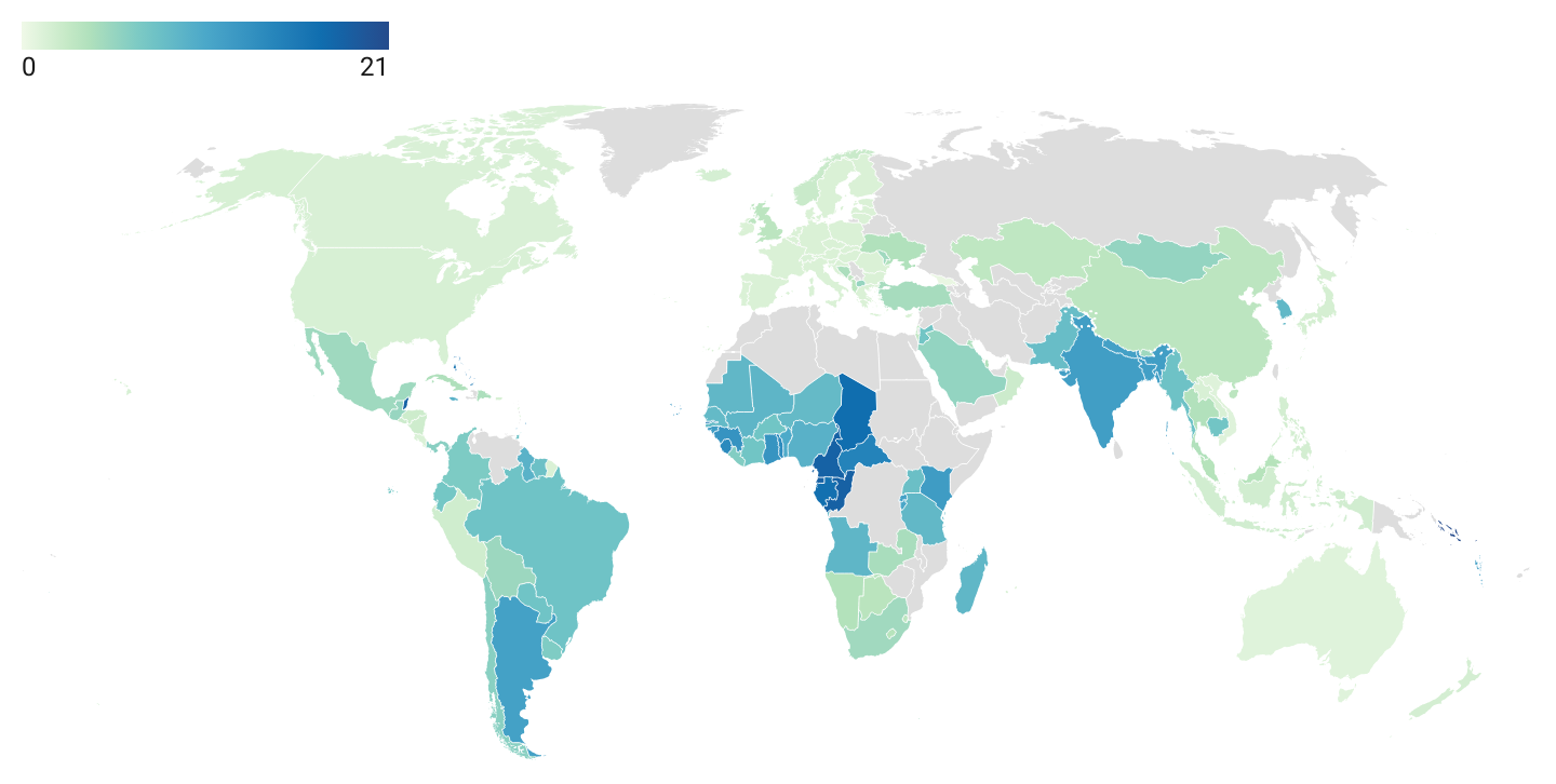Anche le misure tariffarie e non tariffarie applicate dal paese risultano, in media, elevate, come si nota dalla mappa di seguito, che riporta la media ponderata dell’aliquota tariffaria applicata dai paesi sui prodotti in entrata. Per il 2022 i dati per l’Argentina mostrano un’aliquota dell’11.1%, a fronte ad esempio del 7.44% per il Brasile, 7.31% per il Paraguay, 6.43% per l’Uruguay. Si pensi che, a titolo di confronto, l’aliquota tariffaria media UE risulta pari all’1.33%, a fronte di un 3.09% per la Cina. L’adozione di dazi relativamente elevati rappresenta, infatti, un trend comune dei paesi del Mercosur (Mercado Común del Sur), area di libero scambio di cui fanno parte i quattro paesi sudamericani citati.