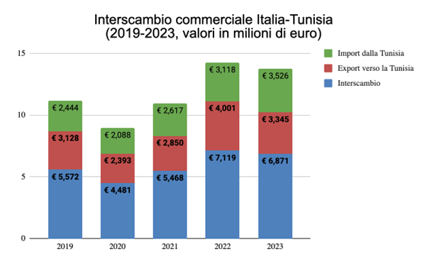 Dal 2022, l'Italia è il primo partner commerciale della Tunisia, con un interscambio che ha sfiorato i 7 miliardi di euro e un saldo pressoché in pareggio. Le esportazioni italiane sono cresciute negli ultimi cinque anni nonostante il rallentamento registrato durante la pandemia, passando da 3,13 miliardi di euro nel 2019 a 3,34 miliardi nel 2023. L'Italia è il secondo cliente e il primo fornitore della Tunisia, consolidando una presenza economica significativa nel Paese. Attualmente, circa 900 imprese italiane operano in Tunisia, impiegando 70 mila persone e rappresentando quasi un terzo delle aziende a partecipazione straniera. Queste aziende, concentrate principalmente nella Grande Tunisi e nelle zone costiere, sono attive in settori come manifatturiero, energia, costruzioni, componentistica automotive, meccanico, farmaceutico, turistico e agroalimentare. Nonostante le sfide economiche e politiche, la Tunisia resta una priorità strategica per l’Italia. Le autorità tunisine riconoscono l'importanza di garantire un clima d'affari stabile e di valorizzare le opportunità di investimento e partenariato, confermando il ruolo centrale delle imprese italiane nel rafforzare i legami economici bilaterali.