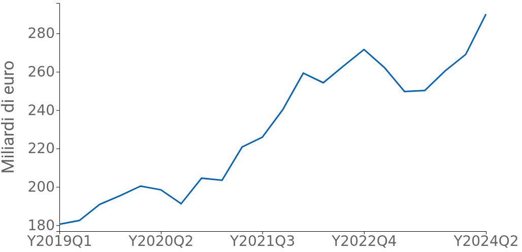 A partire dal 2019, la richiesta di prodotti del settore ha registrato un costante aumento, culminando, nel secondo trimestre 2024, con una domanda che ha superato i 280 miliardi di euro a prezzi correnti. Tale incremento riflette l'importanza crescente del settore sanitario a livello globale, spinta da fattori quali l'invecchiamento della popolazione, l'innovazione tecnologica e, non ultimo, l'impatto della pandemia globale.