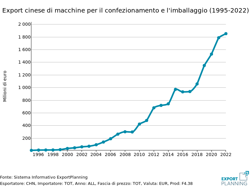 Tra i paesi inseguitori, continua, invece, la crescita delle esportazioni cinesi, che nel 2022 sono stimate in prossimità dei 2 miliardi di euro.