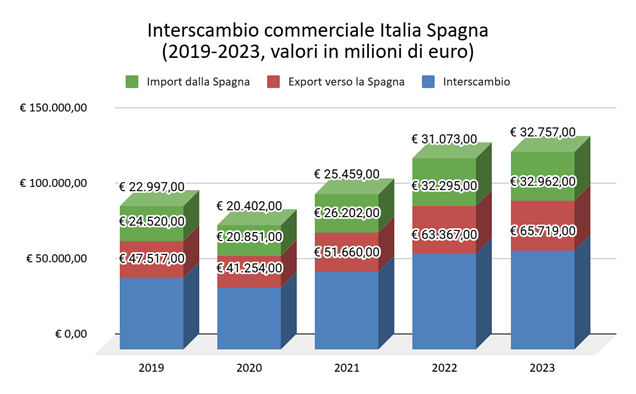 Di fatto, le relazioni economiche tra Italia e Spagna sono sempre più consolidate, con il Belpaese che si conferma uno dei principali attori commerciali per il Paese. Nel periodo gennaio-agosto 2024, infatti, l’Italia è risultata il terzo mercato di destinazione dell’export spagnolo, con una quota di mercato dell’8,7%, e il quarto fornitore della Spagna, con una quota del 7,5%. L’interscambio commerciale è poi passato dai 47,5 miliardi di euro del 2019 ai 65,7 miliardi del 2023, con l’export italiano che ha fatto registrare una crescita significativa (arrivando a sfiorare i 33 miliardi di euro di valore lo scorso anno), trainato da settori chiave come quello enogastronomico, la moda e i macchinari industriali, e le prospettive per il futuro appaiono altrettanto promettenti.