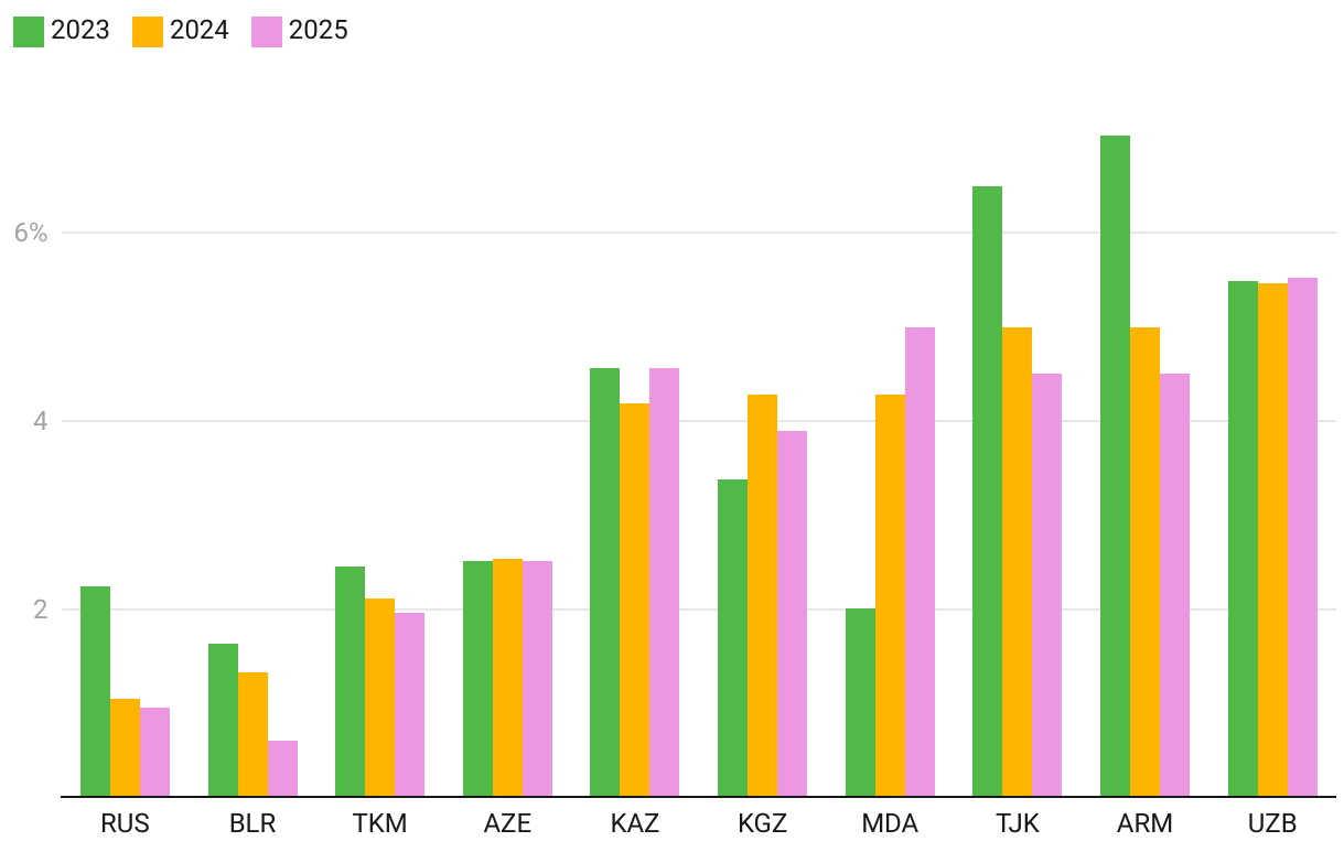 Benché il protrarsi del conflitto in Ucraina continui ad influenzare le attività economiche dell'area, la regione si è progressivamente adattata al nuovo contesto. Secondo le Nazioni Unite, nel 2023 la crescita dell’area CIS e della Georgia complessivamente considerate è stata pari al 3.3%, dopo la contrazione dell’1.9% nel 2022. Per il 2024 si prevede un tasso di crescita più moderato, pari al +2.3%, in relazione all’indebolimento della crescita russa e l'attenuazione degli effetti della delocalizzazione e del riorientamento delle attività economiche regionali.